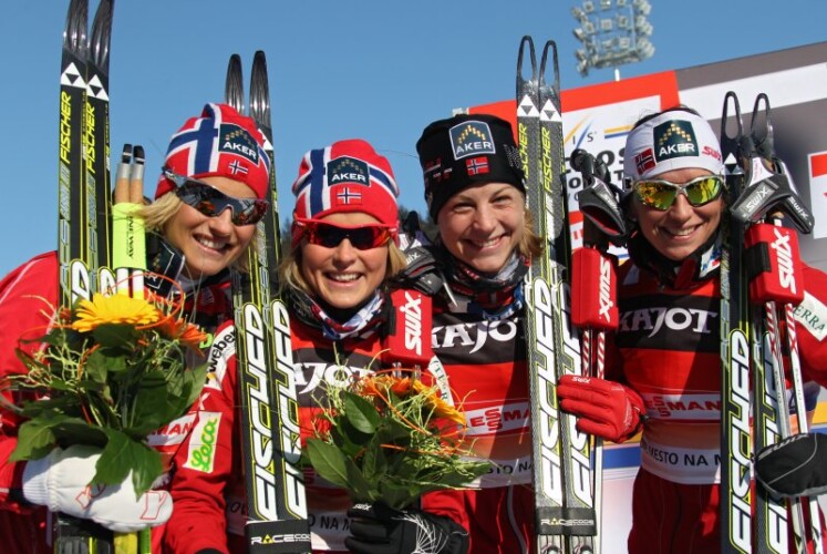 Wie erwartet haben sich die Norwegerinnen Vibeke Skofterud, Therese Johaug, Astrid Jacobsen und Marit Bjoergen den Sieg in der Damenstaffel in Nove Mesto gesichert. Die Skandinavierinnen gewannen vor Finnland und dem zweiten norwegischen Team.