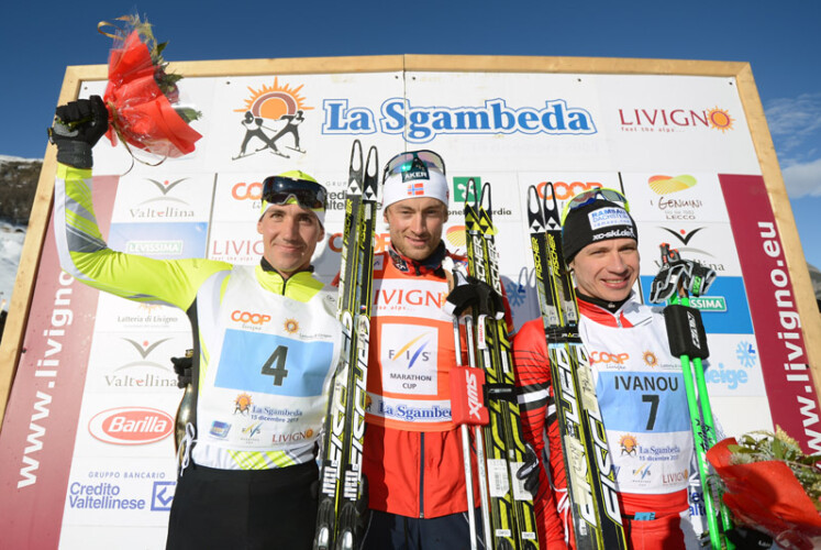 In der Startliste tauchte er erst kurz vor dem Start auf und nach dem 30 Kilometer Rennen beim Weltcup in Davos hatten wir nicht mit einem Start Northugs gerechnet. Dann stand er aber doch an der Linie und dominierte in seiner ganz eigenen Art den Zielsprint. Petter Northug gewann mit 0,7 Sekunden Vorsprung vor dem Tschechen Petr Novak. xc-ski.de Skimarathon Teamathlet Aliaksei Ivanou (Weißrussland) erkämpfte sich nach 42 Kilometer im freien Stil sensationell Platz drei. Auch er war mit Wettkampfkilometern vom Vortag beim Continental Cup in St. Ullrich nach Livigno gereist. „Ich habe mich heute morgen nicht sehr gut gefühlt und gedacht, dass das ein sehr hartes Rennen wird. Aber irgendwie bin ich immer besser ins Rennen gekommen und am Ende war ich vorn dabei, direkt hinter Petter und Petr und es ist sehr schön heute hier Dritter geworden zu sein“, so Ivanou im Ziel. Der Schweizer Toni Livers und der Norweger Morten Eide Pedersen folgten auf den Plätzen vier und fünf. Bester Deutscher war Tom Reichelt auf Platz 23. Er hatte allerdings einen Stockbruch zu beklagen.