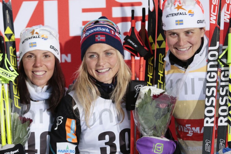 Wie erwartet führte der Weg zum Etappensieg über fünf Kilometer Freistil nur über Therese Johaug. Die Norwegerin zündete direkt vom Start den Turbo und lag im Ziel 17 Sekunden vor Charlotte Kalla, die in den Vorbereitungsrennen ebenfalls gute Form bewies. Wenige Sekunden verlor sie durch einen kleinen Sturz, als sie sich bei einer Südkoreanerin verhakte, die aber nicht ins Gewicht fallen. Der letzte Podiumsplatz ging mit 25 Sekunden Rückstand auf die Siegerin an Sprinterin Ida Ingemarsdotter, die aber in Staffeln auch oft über die fünf Kilometer Distanz eingesetzt wird. Dennoch sieht Therese Johaug sich noch nicht als die sichere Siegerin des Ruka Triples, die mit nur wenigen Metern Vorsprung ins morgige zehn Kilometer lange Jagdrennen im klassischen Stil geht: „Das war früher nicht meine Distanz, aber ich habe viel an Technik und Kraft und Schnellkraft gearbeitet, um mich auch auf den kürzeren Distanzen zu verbessern. Morgen das Jagdrennen wird sehr hart. Da sind einige Damen hinter mir mit geringen Abständen.“ Heidi Weng verpasste das Stockerl um nur sechs Zehntelsekunden und landete damit knapp vor Ingvild Flugstad Østberg. Kerttu Niskanen war 30 Sekunden vor Therese Johaug gestartet und wurde einen Kilometer vor dem Ziel von der Norwegerin eingeholt. Im Ziel kam die Finnin mit 32 Sekunden Rückstand als Sechste in die Wertung vor Astrid Uhrenholdt Jacobsen und Kari Øyre Slind. Rang neun ging an Sprinterin Stina Nilsson vor Alenka Cebasek aus Slowenien, die auf den letzten Metern noch die Schwedin passieren lassen musste.