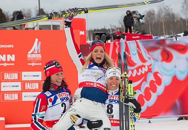Therese Johaug hat im 30 Kilometer-Rennen in Falun in der klassischen Technik fast einen Start-Ziel-Sieg hingelegt und ihren WM-Titel von 2011 in Oslo im klassischen Stil verteidigt. Silber ging an die Freistil-Weltmeisterin von 2013, Marit Bjørgen, gefolgt von Charlotte Kalla.
