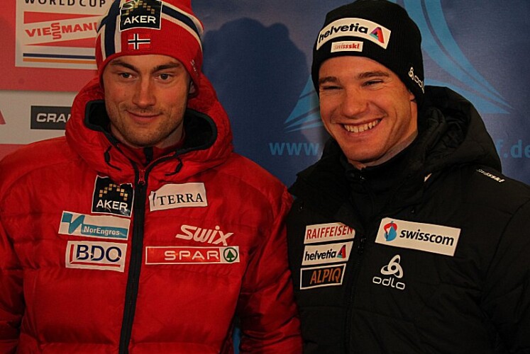 Wie bei den Damen konnte sich Jochen Behle auch bei den Herren über starke Leistungen seiner Sportler freuen. Speziell die Oberhofer Tim Tscharnke, Axel Teichmann und Jens Filbrich wussten auf den Rängen 13, 17 und 19 zu überzeugen. „Ich bin natürlich auch hier sehr zufrieden, nur Axel hat sich hintenraus etwas zäh getan“, meinte Behle. Besonders erfreulich ist das Ergebnis für Tim Tscharnke, der in den letzten Monaten viele gesundheitliche Probleme hatte. „Ich bin ohne Erwartungen in das Rennen gegangen. Seit August war in fünfmal in Folge krank. Mein Trainer Cuno Schreyl hatte da größere Erwartungen als ich. Dass es jetzt so gut war, überrascht mich. Das Material hat auch gepasst und natürlich hatten wir auch etwas Heimvorteil“, erklärte er. Ein Beinbruch ist aber auch Rang 21 für Tobias Angerer nicht, er freut sich auf die nächsten Etappen: „Ich bin ganz zufrieden und kann nach vorn schauen. Es war ein sehr harter Prolog, die Strecke war sehr eisig. Aber die Strecke ist sowieso schwer zu laufen.“
