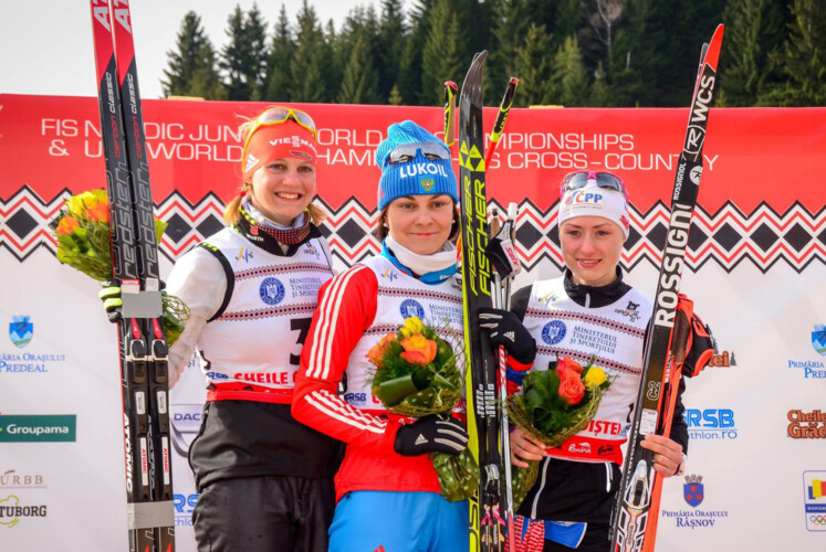 Die Siegerinnen über 5 Kilometer Klassik der Junioren WM: v.l. Antonia Fräbel, Marte Maehlum Johansen, Lotta Udnes Weng © cheilegradistei.ro