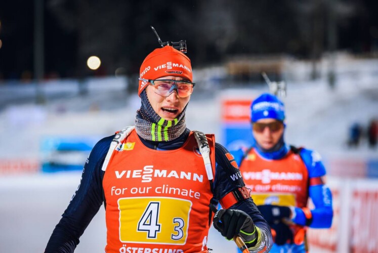 Benedikt Doll hatte es in seinen Runden mit dem Gesamtweltcupsieger Johannes Thingnes Boe, Simon Desthieux (FRA) und Alexander Loginov (RUS) zu tun. J. T. Boe baute seine Führung nach fünf Treffern im liegenden Anschlag aus, gefolgt von der Ukraine und Benedikt Doll ging nach einem Fehlschuss, einem Nachlader und einem weiteren manuellen Nachlader nach 48 Sek. Schießstandzeit dicht hinter Lukas Hofer an sechster Position auf die nächste Runde. Der Vorsprung von J.T. Boe auf die zweitplatzierte Ukraine vergrößerte sich und beim stehenden Anschlag stand er alleine auf der Schießbahn und räumte ohne Nachlader ab. Loginov erorberte sich mit einem ebenfalls fehlerfreien Schießen die zweite Position, nachdem Tsymbal für die Ukraine eine Strafrunde kassierte. Benedikt Doll musste auch hier ein Mal nachladen und ging als Sechster auf seine Schlussrunde. Auf dem Weg zum letzten Wechsel machte Benedikt Doll noch zwei Plätze gut, ging an Lukas Hofer und der Ukraine vorbei und schickte den deutschen Schlussläufer Philipp Nawrath mit einem Rückstand von 1:19,8 Min. an vierter Position ins Rennen. Norwegen führte beim letzten Wechsel vor Russland und Frankreich. Nach dem Rennen sagte Benedikt Doll: „Läuferisch hatten wir heute richtig gutes Material, es macht Spaß und ich glaube, ich komm wieder besser rein.“