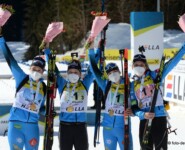 Bei einer spannenden Staffelentscheidung der weiblichen Jugend setzte sich das Team aus Frankreich mit Fany Bertrand, Jeanne Richard und Maya Cloetens nach sieben Nachladern durch. Silber ging an das Trio aus Slowenien mit Klara Vindisar, Kaja Zorc und Lena Repinc als Schlussläuferin mit acht Nachladern und einem Rückstand von 13,2 Sek. Die Italienerinnen Martina Trabucchi, Sara Scattolo und Linda Zingerle gewannen Bronze. Das deutsche Team geriet bereits nach dem ersten Schießen in Rückstand, als Nathalie Horstmann als erste an den Schießstand kam, sich in der Runde wohl etwas übernommen hatte und zwei Strafrunden kassierte. Stehend kam sie mit einem Nachlader durch, verbesserte sich dadurch um vier Plätze und auch auf der Schlussrunde machte sie zwei weitere Plätze gut. Johanna Puff nahm das Rennen mit mehr als zwei Minuten Rückstand auf Position 14 auf. Nach zwei Nachladern im Liegen und einem weiteren im Stehen übergab Johanna Puff an die deutsche Schlussläuferin Selina Grotian auf Rang elf. Obwohl der Abstand nach vorne mittlerweile knapp drei Minuten betrug und die Podestplätze unerreichbar waren, kämpfte Selina Grotian um jeden Meter und jede Sekunde. An der Spitze liefen Frankreich (Cloetens), Italien (Zingerle), Slowenien (Repinc) und auch die Schweiz (Arnet) war gut dabei. Die Österreicherin Lara Wagner hatte durch eine geniale Aufholjagd von Anna Andexer an fünfter Position übernommen. Nach dem liegenden Anschlag übernahm Zingerle die Führung, dicht gefolgt von Frankreich und weiterhin Slowenien. Selina Grotian machte mit einer Null im liegenden Anschlag zwei weitere Plätze gut und lag zwischenzeitlich auf dem achten Rang. Im finalen Schießen musste Zingerle ihrem hohen Renntempo Tribut zollen und drei Strafrunden drehen. Die Französin kam fehlerfrei durch und war als erste Richtung Ziel unterwegs, die Slowenin Repinc 11 Sek. dahinter als Zweite und Zingerle kam bereits aus der Strafrunde, bevor die Verfolgerinnen vom Schießstand weggingen. Selina Grotian benötigte nur einen Nachlader und rückte auf Position sechs vor. An der Spitze und damit die Podestplatzierungen blieb die Besetzung unverändert aber Grotian ging auf ihrer Schlussrunde noch an der Russin und der Österreicherin vorbei und kam hinter Zingerle auf dem vierten Rang ins Ziel vor Österreich. Die Schweiz belegte am Ende Rang acht.
