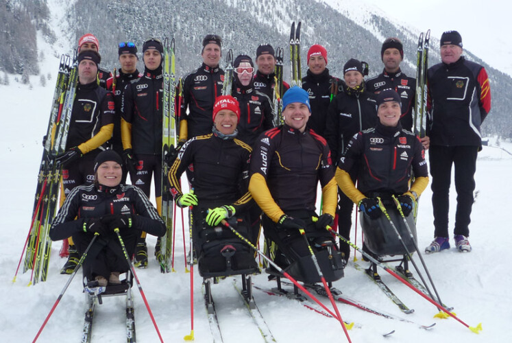 In Livigno trafen Sabine und ich das Nordic Paralympic Ski Team Deutschland. Gemeinsam verbrachten wir eine Woche im selben Hotel. Beim Essen, Training und Skiwachsen war schnell Gesprächsstoff gefunden. Unglaubliche Geschichten brachten uns aus dem Staunen kaum heraus. Trainer und Athleten erzählten uns aus ihrem Leben, berichteten von überwältigenden Erfolgen und wir bekamen Einblicke mit welcher Akribie und welchem Ehrgeiz sie arbeiten und für ihren Sport leben. Am beeindruckendsten war allerdings die Freude und der Zusammenhalt den das Team von Ralf Rombach und Werner Nauber ausstrahlt. Die Teammanagerin des xc-ski.de Skimarathon Teams zu diesem Zusammentreffen: „Es hat riesigen Spaß gemacht, gemeinsam die Tage in Livigno zu verbringen. Eine geile Truppe!“