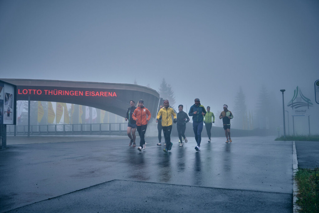 Donnerstag, 14:30 Uhr, Start des Camps. Wir treffen uns mit Katherine Sauerbrey und Helen Hoffmann, zwei Athletinnen aus dem deutschen Kader. Sie berichten von ihrem Weg in den Leistungssport, die vergangene Saison und die aktuell laufende Vorbereitung auf den olympischen Winter. Olympisches Kribbeln ein zweites Mal spürbar. Dann Aufbruch zur ersten Trainingseinheit: Laufen für die einen, Walken für die anderen. Aktiver Erkundungslauf, um die Sportstätten in und um Oberhof zu sehen. Nun, das mit dem Sehen ist so eine Sache. Schließlich ist Nebel, viel Nebel, sogar ganz viel Nebel. Zumindest die eigenen Schuhspitzen sind noch schemenhaft zu sehen, was sicheres Laufen und Walken begünstigt. Natürlich sind auch die Kälte und die Nässe noch da. Und trotzdem tut die Bewegung an der Luft gut nach vielen Stunden Autofahren.