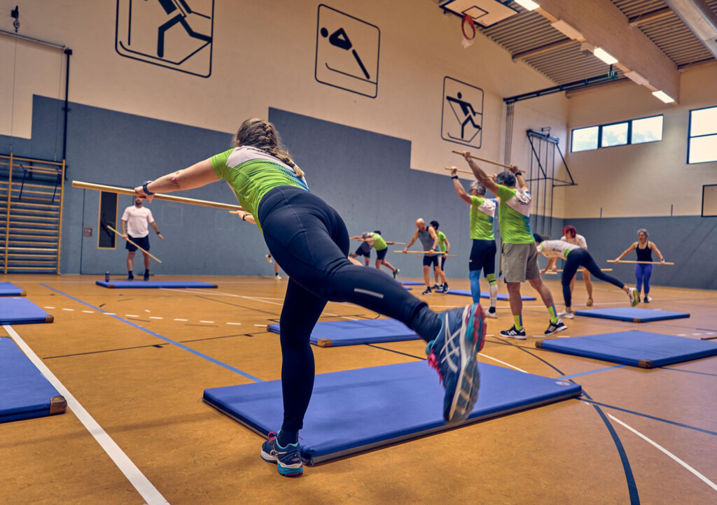 In der Sporthalle wartet Axel Teichmann auf uns. Der Beamer zeigt eine Folie, auf der steht «Athletik-Workshop» und dann noch «Big 5» sonst nichts. Es sind noch nicht alle da, Axel spricht noch nicht und da hat der Geist etwas Zeit zu schwadronieren. Big 5, da war doch was? Stimmt, Safari und Tiere: Löwe, Leopard, Elefant, Nashorn, Büffel. Genau, das war es! Ach ja, und dann war da noch das Buch von John Strelecky zu den «Big Five for Life», das lehrt, sich auf das Wesentliche im Leben zu konzentrieren. Axel Teichmann begrüsst uns und Zuhören weicht den Selbstgesprächen. Er spricht von Kniebeugen, Liegestütz, Unterarmstütz, Standwaage und Klimmzügen. Das sind fünf oder eben «Big 5». Das Wesentliche eben. Leider ist auf der Folie noch Platz und plötzlich geht es um «Big 5 plus»: Seilspringen, Split Squats, Schiffchen (klingt niedlich, ist es aber ganz und gar nicht!), Schultermobilität und weitere Gemeinheiten gesellen sich dazu. Bei den Trainingsformen reisen wir von EMTG («Einfach mal trainieren gehen») über Tabata bis zum Minutentraining. An dieser Stelle endet das Zuhören und das Mitmachen beginnt. In den nächsten 30 Minuten trieft Schweiß auf die Matte, der Atem geht schwer, die Gedanken sind in Aufruhr und der Puls galoppiert mächtig. Es macht aber auch eine Menge Spaß, zusammen und unter Anleitung von Axel Teichmann zu sehen, was alles möglich und wirkungsvoll ist. Dass während des Minutentrainings im Hintergrund aus vollem Rohr «I just can’t get enough» von Depeche Mode läuft ist sicher reiner Zufall. Axel Teichmann fasst zusammen, dass wir nun an der Belastungsverträglichkeit gearbeitet und den langfristigen Leistungsaufbau unterstützt haben. Das erzähle ich den müden Muskeln dann, wenn sie wieder zuhören wollen. Jetzt aber erst mal zurück ins Hotel. Langsam beginnt das Aufhübschen für die Gala-Geburtstagsfeier. Als wäre nichts gewesen liegt das Team-Polo-Shirt bereit.