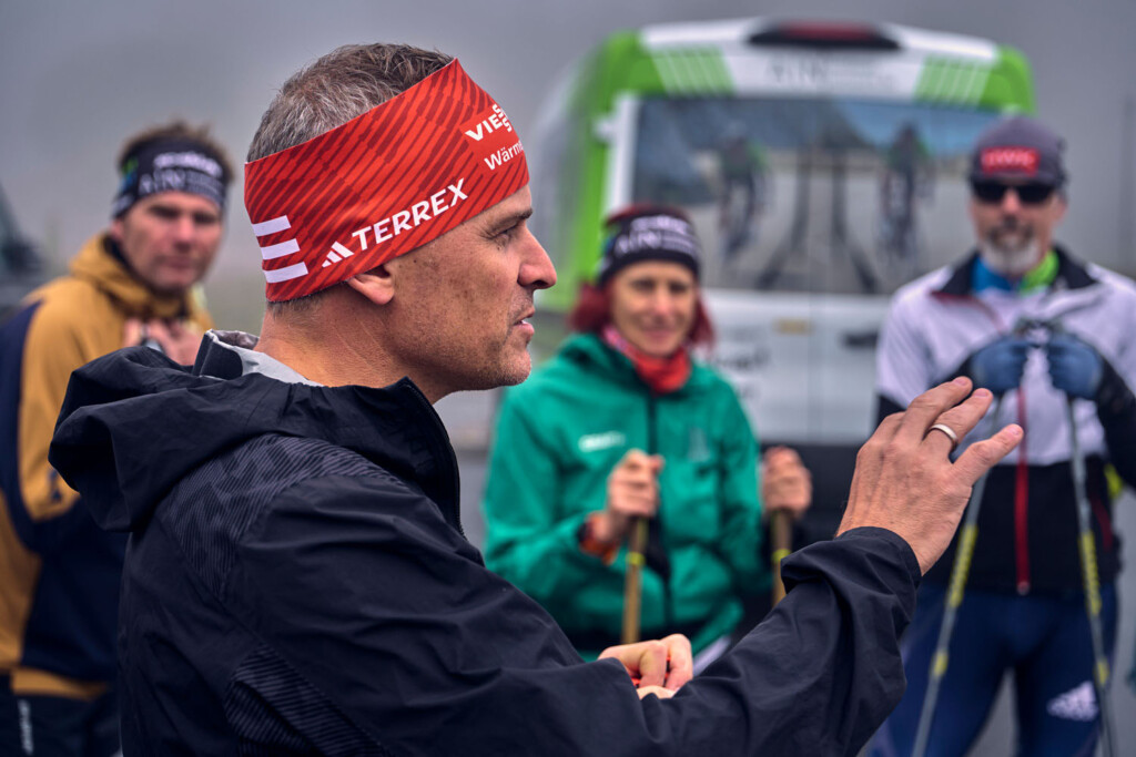 Tobias Angerer erklärt, dass wir in der Bewegung immer «im Käfig bleiben». Hat das etwas mit den Big 5 zu tun? Ich schaue rasch um mich. Nichts zu sehen von Löwe, Leopard, Elefant, Nashorn oder Büffel. Beruhigt kann ich wieder zuhören. Aha, es geht um kompakte und kontrollierte Körperhaltung während dem Stocklaufen. Ausschweifen körperlich verboten, Gedanken stets fokussiert. Das hier macht Spaß und ist trotzdem kein Kindergeburtstag.