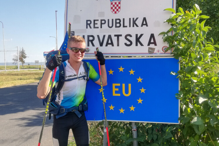 Oft werde ich gefragt, welche Etappenstücke ich denn für eine kleine Skirollertour empfehlen könnte. Auf meiner Tour präsentiert sich besonders die Etappe zwischen Passau und Wien als wunderbar zu rollende Strecke. Diese ist circa 320 Kilometer lang, durchgehend asphaltiert, flach und nahezu autofrei. Über wirklich idyllische Landschaften geht es für mich hierbei durch die Schlögener Schlinge, dann über die Großstadt Linz und das Stift Melk in die Wachau. Unterwegs treffe ich sogar Sportler auf Rollski und lege ein paar Kilometer mit ihnen gemeinsam zurück. Auch wenn ich aufgrund des größeren Gesamtprojektes der Europadurchquerung auf Cross-Rollern unterwegs bin, kann der Abschnitt zwischen Passau und Wien fast durchgehend mit normalen Trainingsrollern befahren werden. Jedoch sollte die große Anzahl an Radausflüglern bedacht werden, sodass man eine Mehrtagestour unbedingt außerhalb der Hauptreisezeit unternehmen sollte. Ansonsten macht es keinen Spaß und fühlt sich schlimmer an als Überholmanöver beim Massenstart eines Langlaufrennens. Nach der Passage durch die Wachau rolle ich über Krems und Tulln an den Stadtrand von Wien. Von dort aus nehme ich anstelle der ruhigen Donauinsel den Abzweig in die Innenstadt der Kulturmetropole, was nochmal konzentriertes Skirollern im Straßenverkehr erfordert – aber durch die Hofburg zu rollern ist für mich ein absolutes Muss.