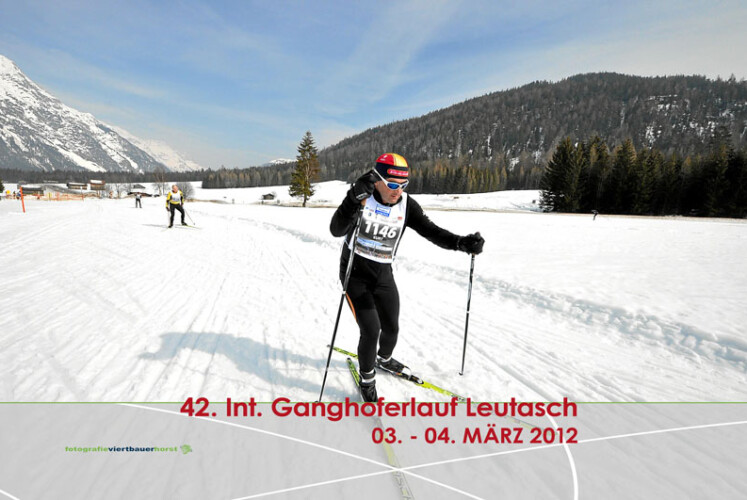 Der Wecker klingelte um 5:00 Uhr. Ich schlief schlecht und wurde schon um 4:00 Uhr munter. Meine Reiseroute: Oberndorf-Salzburg-Kufstein-Innsbruck-Seefeld-Leutasch. Ich kam gegen 8:00 Uhr sehr unausgeschlafen in Leutasch an. Aber nicht direkt beim Sportplatz. Strenge Ordner lotsten die Autofahrer im Ortsteil Weidach auf einen Parkplatz. Umsteigen in den Shuttle Bus. In der Ausschreibung stand von dem nichts. Also mußte ich umpacken. Ärgerlich! Mit einer Reisetasche, Stöcken, ein paar Ski und angezogenen Langlaufschuhen bestieg ich den Bus. Kopfschütteln im ganzen Bus! Ich hab ja nur ein paar Ski, aber was tun die anderen mit mehr Paaren die auch noch selbst wachsen wollen?! Unverständlich. Beim Sportplatz bzw. Erlebnisbad war dann Endstation. Der Straßenrand war aber doch zugeparkt. Der große Parkplatz beim Bad war leer!? Und der Parkplatz beim Sportplatz war voll mit Läufern die wohl gestern oder heute sehr früh angereist waren. Ich hole die Startnummer, bringe meine Tasche in die Garderobe. Ich gehe mit den Ski zum HWK Wachszelt. Christian vom HWK Team hatte ich letzte Woche schon informiert, dass ich das Beste heute will! Ich bekam auch das Beste. Das gleiche wie die Damen Siegerin Sigrid Mutscheller, 1:52 Stunden. Gegen 9:45 Uhr ist mein Ski fertig. Ich beginne mich aufzuwärmen – bin begeistert. Er läuft sensationell. Ich bin eindeutig schneller als die anderen.