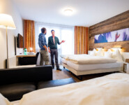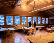 Zurück in Klosters schaue ich noch kurz in der Sport-Lodge vorbei. Das einzige Langlauf-Hotel in Klosters wird von Michaela Wolf sehr persönlich geführt. Wie alle zertifizierten Langlauf-Hotels in Davos-Klosters ist es nur wenige Schritte vom Loipeneinstieg entfernt. 18 Zimmer und drei Appartements bietet die Sport-Lodge. Im großzügig gestalteten Aufenthaltsraum trifft man sich zum Frühstück und zum Plausch nach der Langlauftour. In Davos bieten die Solaria Serviced Apartments eine Möglichkeit, sich selbst zu verpflegen und auf den Luxus der Sterne-Hotels aber nicht einige praktische Services zu verzichten. Das nutzt auch Lucas Bögl zusammen mit seiner kleinen Höhentrainingsgruppe des Deutschen Skiverbandes. Im Zentrum von Davos Dorf steht das Hotel Seehof. Es ist das höchstdekorierte unter den Langlauf-Hotels in Davos, kann es doch fünf Sterne vorweisen. Dementsprechend exklusiv sind Zimmer, Kulinarik und Wellness angelegt. Dazu gibt es viele Services rund um das Skilanglaufen. Vier Sterne Standard bietet das Hotel Waldhuus, dessen besondere Lage und zuvorkommenden Service ich während meines Aufenthalts genießen durfte.