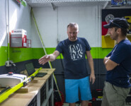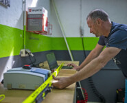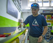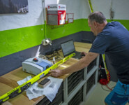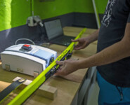 Mit Enrico Heisig habe ich mich Mitte September in Oberhof getroffen, um genau so einen Reinigungsvorgang selbst durchzuführen. Der DSV hat sich, um das Verfahren zu optimieren, zwei baugleiche Fluor-Testgeräte der Firma Bruker angeschafft, wie sie in der kommenden Saison bei den Tests vor und nach den Rennen verwendet werden (auch darüber haben wir berichtet). So kann direkt überprüft werden, ob das Reinigen erfolgreich war. Und genau so will auch ich überprüfen, ob die mir empfohlene Reinigungsprozedur effektiv ist. Vorab habe ich mir bereits Tipps von Simon Kronbichler von HWK geholt, die wir in einer Anleitung zusammengefasst haben (Anleitung zur Fluor-Reinigung von Langlaufski und Zubehör). Nun betrete ich mit meinen Rennski das Technologiezentrum in Oberhof, wo sonst geschliffen, präpariert und gelagert wird. Enrico hat das Testgerät schon vorbereitet und erklärt mir kurz den Ablauf. Der Ski wird mit seinem Belag voran an drei Stellen (vorne, Mitte und hinten) an das Testgerät gehalten. Jeder Punkt wird einzeln mittels Infrarot-Spektrometrie gemessen und ein Wert ermittelt. Liegt dieser über 1,0 Prozent, so wird davon ausgegangen, dass sich noch Fluor auf dem Belag befindet. Liegt er darunter, gilt der Ski als „clean“, also sauber. Um den Test zu bestehen, müssen bei den FIS-Sportarten wie Skilanglauf alle drei Stellen unter dem Grenzwert liegen.