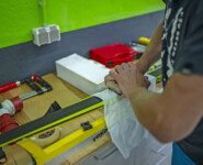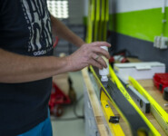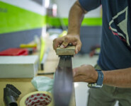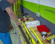 Der Chef der deutschen Wachser gibt mir noch einen Tipp: Damit die Feinmetallbürste den Belag nicht beschädigt, sollte sie nicht fabrikneu oder zuvor mit Sandpapier/Schleifpapier etwas stumpf gemacht werden. Außerdem kann es nötig sein, Ski, die zuvor mehrmals mit Fluor-Wachs behandelt wurden, nach dem Reinigen noch mit fluorfreiem Wachs zu bügeln und das Wachs ganz normal abzuziehen und auszubürsten. Am Ende sind alle diese Schritte natürlich keine Garantie, dass sich nicht doch noch Fluor auf dem Belag befindet. Eine noch größere Sicherheit bietet das neu Schleifen des Belags, was aber durchaus zu einer Veränderung der Gleitfähigkeiten (positiv sowie negativ) führen kann. Deshalb ist das Reinigen vorzuziehen.