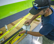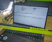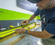 Nach dem Ablüften des Skis geht es erneut an das Testgerät. Und siehe da, der Wert liegt an allen drei Stellen nun deutlich unter dem Grenzwert. Es erscheint ein grünes Häkchen und ich wäre startberechtigt. Nachdem den ersten Ski meines Paars Enrico gesäubert hat, will ich es nun selbst probieren. Ich schnappe mir den zweiten Ski und wiederhole die Schritte. Ist doch eigentlich nicht schwer, denke ich mir. Doch das Testgerät spricht eine andere Sprache. Mein zweiter Ski liegt weiterhin über dem Grenzwert. Ich versuche es ein zweites Mal mit dem Reinigen, aber das Ergebnis bleibt annähernd dasselbe. Ich bin ratlos. Doch Enrico hat einen Verdacht. Er geht noch einmal selbst mit der Bürste über den mit Fluorreiniger benetzten Belag und schon passt das Ergebnis des Testgeräts. Anscheinend habe ich die Bürste zu vorsichtig angedrückt und damit nicht alle Fluor-Partikel entfernt. Es ist also ganz entscheidend, den nötigen Druck aufzuwenden, um den Belag sauber zu bekommen.