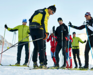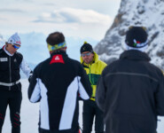 Der Ablauf der ersten Einheit auf dem Gletscher war dann aber für alle Camp-Teilnehmer ähnlich. Zunächst wurde von den Langlauflehrern der aktuelle Stand in Sachen Technik in Augenschein genommen. Dann ging es mithilfe von speziellen Übungen an deren Verbesserung. Zwischendurch blieb fast keine Zeit, auch mal einen Blick in Richtung Top-Athleten zu werfen und wie im Flug waren die ersten beiden Stunden auf Schnee vorbei. Im Tal wartete bereits das Mittagessen, das von allen mit Heißhunger verschlungen wurde. Dann war erstmal Mittagsruhe angesagt, um neue Kräfte zu tanken. Auch das ist eine Erinnerung, die viele Langläufer mit Gletschercamps verbinden: Zu keiner Zeit schläft es sich so gut, wie nach einer Mahlzeit die auf eine Trainingseinheit in luftiger Höhe folgt.