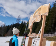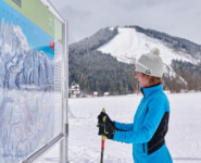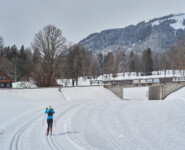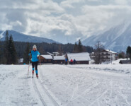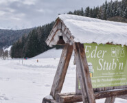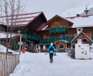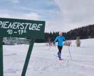 Die Loipe entschädigte mich aber sofort wieder und es ging weiter Richtung Skistadion Ramsau. Hier wollte ich es mir nicht nehmen lassen, alle möglichen Anstiege und Zusatzschleifen mitzunehmen die es gab. Schließlich sollte mir nach diesem gigantischen Mittagsmahl auch noch das Abendessen schmecken. Ramsau ist nicht umsonst einer der beliebtesten österreichischen Wintersportorte was das Langlaufen betrifft. So viel an einem Tag stand ich schon lang nicht mehr auf den schmalen Brettern. Nach einer kleinen Umziehpause im Hotel ging es dann nochmal auf die noch immer bestens gespurte Loipe und in Richtung Frienerstube. Bei jedem Besuch in Ramsau halte ich dort an, meist nur auf ein warmes Getränk. Aber heute wollte ich die kulinarischen Künste testen! Mein Lieblingsgemüse Kürbis als leckerer Eintopf mit Bergkäsekrapferl sollte es sein! Das klang schon mal mehr als verführerisch. Und in der alten Bauernstube der Ramsauer Bioniere, zu denen der Biobauernhof zählt, fühlt man sich wie zuhause. Hier kann man jeden Winter Köstlichkeiten aus regionalem Anbau und regionaler Herstellung genießen. Der Chef selbst legte natürlich auch Hand an und servierte mir meine Portion Kürbisgemüse mit Bergkäsekrapferl. Was soll ich sagen? Es war köstlich, eine Geschmacksexplosion! Genau was ich nach einem langen Tag auf der Loipe gebraucht habe! Da liefen die letzten Kilometer zum Hotel fast wie von selbst.