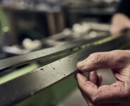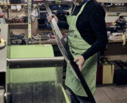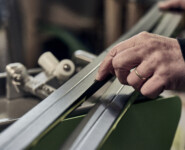 Dann kann es losgehen. Die circa 450 Kilogramm schwere und damit schon fast „handliche“ Wintersteiger Omega RS 150 kommt zum Einsatz. Sie ist auch die erste Wahl, wenn die Techniker der Nationalmannschaften ihre Maschine mit zu den Großereignissen wie Olympische Spiele und Weltmeisterschaften nehmen. Der große Bruder RS NC bleibt derweil mit fast dem dreifachen Gewicht eher zuhause stehen. Über den Touchscreen hat Franz Zugriff auf die unterschiedlichen Parameter wie die Drehzahl des Schleifsteins, den Vorschub des Skis oder die Schleifkraft. Sie alle haben ihren Einfluss auf das Endprodukt, das aber natürlich am meisten von der Schliffstruktur bestimmt wird. 27 Schliffe sind auf der RS 150 mit Rennpaket voreingestellt. „Wir haben aber schon mehr als 500 Varianten ausprobiert und auf der eigenen Teststrecke hinter dem Haus getestet“, so Schönberger. Die Nähe zwischen Schleifmaschine und Schnee ermöglicht ihm eine effiziente Arbeitsweise. Ski schleifen, Ausgleiten, Umschleifen und wieder zurück nach draußen. „Wenn ein Schliff funktioniert, fährt der Ski schon mal 30 Meter. funktioniert er nicht, sind es nur 23 Meter. Das sind im Rennen natürlich Welten“, erklärt er weiter.