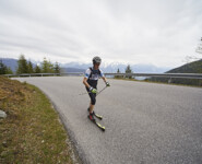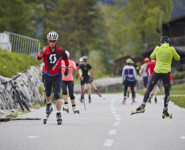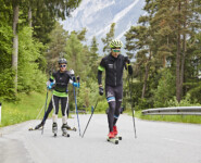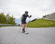 Schon bei der letzten Email vor dem Camp mit organisatorischen Hinweisen wurde klar, dass es wohl eine große Gruppe wird und ich war schon neugierig, wer und was da so alles auf mich zukommt. Auch würden wir zum ersten Mal auf der Rollerbahn in Seefeld trainieren können, die sich in den letzten Jahren noch im Umbau befand. Da ich mein Skiroller-Training überwiegend auf der Straße oder Radwegen mache und nicht auf der Bahn, war ich schon sehr gespannt auf die technische Herausforderung. Das Camp begann dann nach entspannter Anreise nach Mösern mittags mit einem Wiedersehen vieler bekannter und neuer Gesichter. Die bunte ca. 30-köpfige Gruppe aus verschiedenen Regionen Deutschlands, Österreichs und der Schweiz startete nach einer kurzen Begrüßung durch Thomas Freimuth mit einem Lauf Richtung Seefeld, wo es direkt auf die Bahn ging. Thomas leitete das Techniktraining für Klassik und Skating, das Anfängern wie Fortgeschrittenen gleichermaßen wertvolle Inhalte vermittelte. Parallel dazu drehte eine zweite Gruppe, die überwiegend aus Team-Mitgliedern bestand, lockere Runden auf der 3,8 km langen Strecke. Ich holte mir erstmal etwas Lockerheit im welligen Streckenteil, bevor ich dann den etwas anspruchsvolleren Abschnitt, der mit dem Anstieg über die WM-Brücke beginnt und endet, in Angriff nahm. Fazit: Auch diese Abschnitte sind gut machbar für Hobby-Läufer und es eröffnen sich dadurch willkommene Variationsmöglichkeiten. Nach 2,5 Stunden, in deren Verlauf die Anfänger der Technikgruppe sich auch schon an leichtere Abfahrten herantasten konnten und ihren Bewegungsradius erweiterten, war der Trainingsauftakt schon wieder Geschichte. Nach dem Abendessen versammelten wir uns in großer Runde und jeder stellte sich und seine Motivation zum Langlaufen vor. Mit Matthias aus Kärnten und der Schweizerin Katja stoßen zwei ambitionierte und sympathische Athleten zum Skiclassics-Team dazu. Schön ist es auch immer wieder zu sehen, wie unterschiedlich die Hintergründe sind, die uns zum Langlaufen und intensiven Training bringen, wie sehr aber die Freude an der Bewegung als verbindendes Element im Vordergrund steht.
