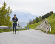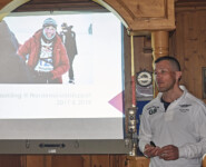 Am Samstag spielten wir bei wärmeren Temperaturen im Vergleich zu den Vortagen auch wieder verschiedene Trainingsformen durch: Frühsport mit Yoga, eine lange Wanderung mit ordentlich Höhenmetern Richtung Hohe Munde mit der kompletten Gruppe und Grundlagen-/Techniktraining auf der Rollerbahn. Sascha, Thomas und ich spulten alternativ zur Wanderung erneut einige Radkilometer mit Höhenmetern ab und genossen die Landschaft. Die Wirkung der Berge und des sonnigen Wetters war allen am Abend in ihren zufriedenen Gesichtern abzulesen. Fazit: Was für ein Glück. Um daran zu erinnern, wofür wir eigentlich trainieren, stellte Thomas Freimuth sich als Langläufer und die Aktivitäten seiner Firma Ausdauernetzwerk, am Abend vor. Wenn man sich die Radtouren durch die Pyrenäen und die Alpen, die Gruppenfahrt zum Vasalauf und die Ski-Camps anschaut, die er veranstaltet, will man sofort loslegen. Etwas genauer überlegt man es sich dann wohl beim Skimarathon Nordenskiöldsloppet, der am Polarkreis über 220 km ausgetragen wird. Aber nur um seine Trainingsplanung und natürlich nicht die Motivation zu überdenken. Beim Vortrag von Michael Förster, der zweimal das Rennen bestritt, lernten wir, dass 3 x 90 = 220 ist. Langstreckenathleten haben halt ihre eigene, erlebte Algebra. Nach seinem „Did not finish“ wegen Augenproblemen in 2017, finishte er 2018 und brachte uns das Rennen mit seinen beeindruckenden Schilderungen nahe. Wer weiß: Das xc-ski.de / A|N Team beim Nordenskiöldsloppet? Ein paar überlegen schon ….