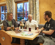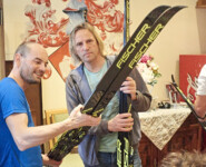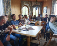 Der nächste Tag startete mit einer Lauf- und Mobilisationseinheit am Möserer Weiher, was genau das Richtige zum Wachwerden ist. Nach dem Frühstück ging es an die erste, größere Herausforderung an Kondition und Technik. Bei der Bergrollereinheit von Haiming nach Ochsengarten überwindet man auf 10 km immerhin 1000 hm. Besonders für die Neulinge auf Skirollern war das eine harte Nuss und für alle anderen hieß das einen schönen Rhythmus finden, so dass man oben raus noch etwas Gas geben kann. Ich ging die Einheit etwas zu forsch und mit zu viel Impuls an und musste etwas rausnehmen. Meine Technik wurde im Verlauf runder und so konnte ich ab der Mitte wieder mehr Fahrt aufnehmen. Das Bergrollern gibt einem immer ein direktes Feedback der eigenen Form und Technik und wenn es läuft, dann kommt man in einen wunderbaren Flow – Genuss pur also. Nach dem Training schmeckt das Essen bekanntlich nochmal so gut, vor allen Dingen in einem recht lässigen amerikanischen Restaurant am Fuß der Bergstrecke. Gut dass es neben den leckeren Burgern auch noch Pasta gab. Das schöne am Sommertraining ist, dass es viele Outdoor-Sportarten einschließt und man dabei viele intensive Landschaftseindrücke bekommt. Das ist eine meiner Hauptmotivationen für das Rennradtraining. Am Nachmittag erkundeten wir so auf 66 km die Gegend zwischen Mösern und Krün. Auf dem Rückweg über das Leutascher Tal wies mich Daniel aus dem Berner Oberland darauf hin, dass wir noch 20 km zu fahren hätten, uns allerdings noch über 600 hm fehlen würden. Der sehr fordernde Anstieg aus dem Inntal nach Seefeld nach einer rasanten Abfahrt schaffte da Abhilfe und gab jedem ein direktes Feedback über seine aktuelle Radform. Da nicht alle Rad fahren wollten, lief eine kleine Gruppe parallel dazu zur fast 1600 m hoch gelegenen Rauthhütte, von der man ein wunderbares Panorama auf über 40 Gipfel hat. Ein weiteres Highlight war am Abend der Besuch vom ÖSV-Servicetechniker Martin Pfurtscheller, der alle Teilnehmer individuell bezüglich geeigneter Ski-Strukturen beriet und diese zum Schleifen mitnahm. Es ist immer wieder eine Freude, mit welcher Ruhe und Kompetenz er dabei auf jeden eingeht und dass ganz nebenbei seine Schliffe auch noch funktionieren. Pfurtschi und Reinhard „Reini“ Kronbichler vom Wachshersteller HWK gingen dann zum xc-ski.de Stammtisch, an dem sie von Mario Felgenhauer, dem Betreiber von xc-ski.de, zu Fragen rund um Skiauswahl und –präparierung befragt wurden. Dies war unterhaltsam und informativ zugleich, so dass ich trotz der Erschöpfung durch das Training voll bei der Sache war.