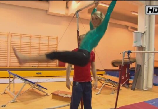 Das ist doch mal eine neue Trainingsmethode! Therese Johaug absolviert eine Turn-Trainingseinheit. Und das ist gar nicht so leicht, wie man sieht …