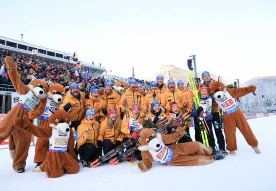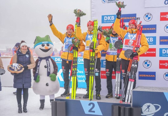 Norwegens Herren profitieren von Benedikt Dolls Schwäche am Schießstand und gewinnen beim Biathlon Weltcup in Ruhpolding auch den vierten Staffelbewerb der Saison. Philipp Nawrath bringt die deutsche Staffel mit einer überzeugenden Vorstellung auf dem Silberrang ins Ziel und Italien komplettiert das Podest…