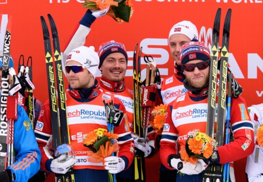 In der Herren-Staffel von Nove Mesto konnten sich ebenfalls die Norweger Sjur Røthe, Martin Johnsrud Sundby, Mathias Rundgreen und Finn Hågen Krogh durchsetzen, wenn auch nur wenige Sekunden vor Russland. Die DSV-Herren verloren den Zielsprint um Platz drei gegen Italiens Federico Pellegrino….
