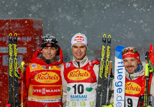 Vinzenz Geiger hat den Bann gebrochen und erstmals in dieser Saison Jarl Riiber (NOR) besiegt. In Ramsau am Dachstein siegte er vor dem Weltcup-Gesamtführenden. Dritter wurde Fabian Rießle vor Eric Frenzel.