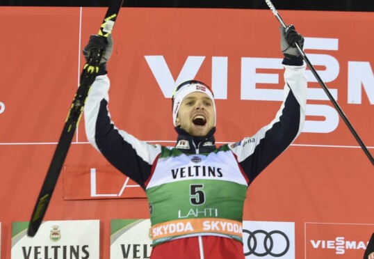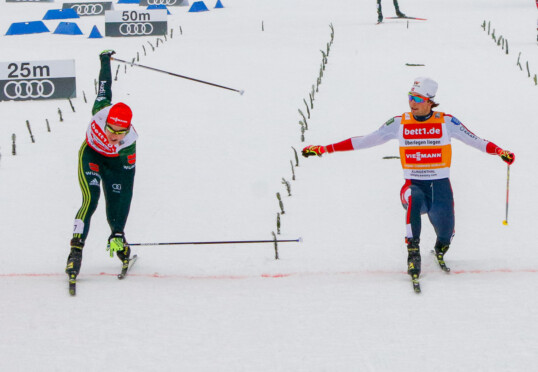 Wieder wurde die Nordische Kombination in einem Foto-Finish entschieden, und wieder hatte ein Norweger den Fuß vorne: Am Sonntag in Lahti bewies Joergen Graabak einmal mehr, dass auch er ein starker Sprinter ist. Nachdem sein Landsmann Jarl Riiber erst vor einer Woche in Klingenthal um einen Zentimeter gegen Vinzenz Geiger (Oberstdorf) gewonnen hatte, war das heutige Ergebnis ähnlich knapp. Rund zwei Zentimeter entschieden am Ende über Sieg und Platz zwei.