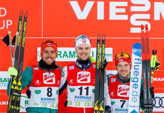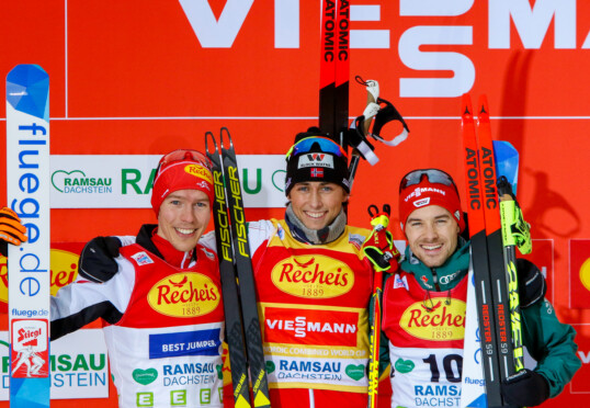Jarl Riiber (NOR) ist derzeit nicht zu stoppen: Im österreichischen Ramsau am Dachstein gewinnt er den ersten Einzelwettbewerb. Zweiter wird Franz-Josef Rehrl (AUT) vor Fabian Riessle (Breitnau).