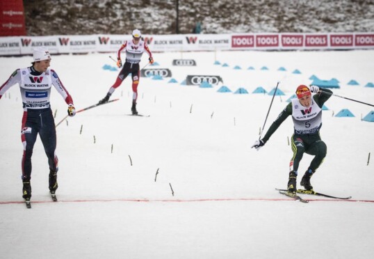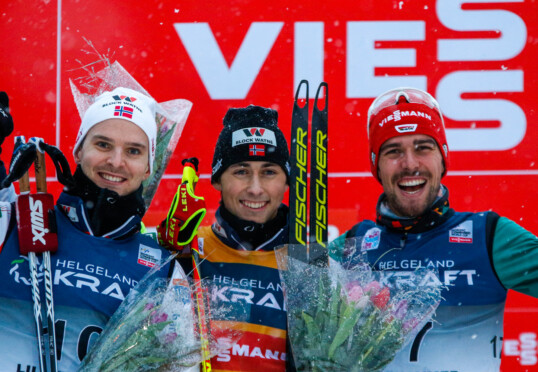 Der angekündigte Dreikampf um die Krone des Mannschaftswettbewerbs hatte sich bereits nach dem Springen erledigt – zu Team Deutschlands Gunsten. Sowohl Lukas Greiderer (AUT) als auch Jarl Magnus Riiber (NOR) wurden wegen nicht regelkonformer Anzüge disqualifiziert.