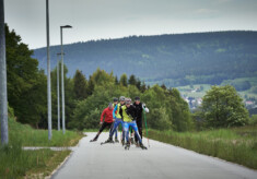 Die schwierigste Aufgabe für die Testläufer ist nach wie vor die Kategorie Allround, oder auch Kombi-Rollski genannt. Zwei Technikarten, die unterschiedlicher nicht sein könnten sollen hier mit einem Sportgerät betrieben werden können …