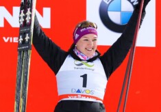 Für Denise Herrmann war der Tag in Davos mehr als perfekt, aber auch alle drei Herren auf dem Podium hatten mehr als genug Grund zur Freude …