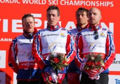 Mit dem Spurt ihres Schlussläufers Petter Northug haben die Norweger Tord Asle Gjerdalen, Eldar Roenning und Sjur Roethe die Goldmedaille bei den Nordischen Ski-Weltmeisterschaften gewonnen und ihren Titel verteidigt. Das deutsche Team war vor allem mit Schlussläufer Axel Teichmann vom Pech verfolgt …