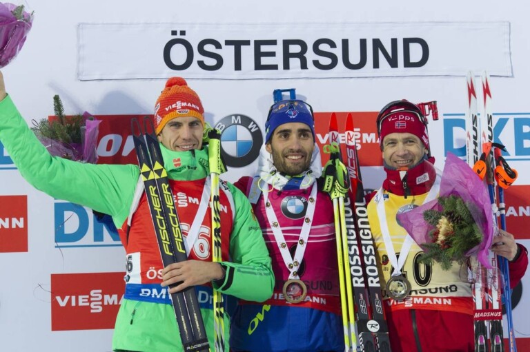 05.12.2015, Arnd Peiffer (GER), Martin Fourcade (FRA), Ole Einar Bjoerndalen (NOR), (l-r) © Manzoni/NordicFocus