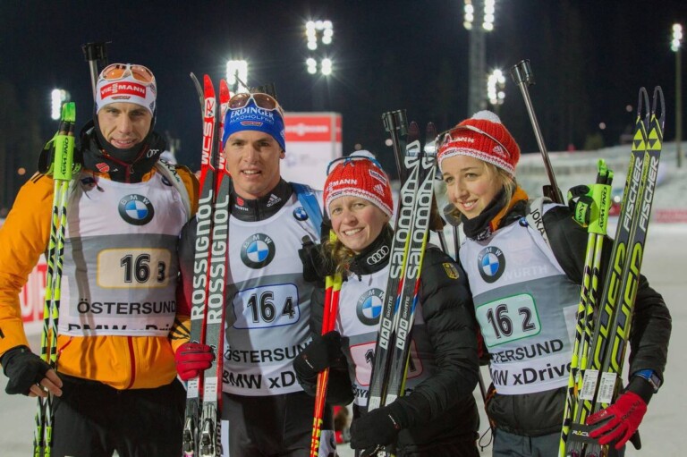 30.11.2014, Arnd Peiffer (GER), Simon Schempp (GER), Franziska Hildebrand (GER), Franziska Preuss (GER) © Manzoni/NordicFocus