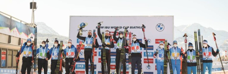 Sturla Holm Laegreid (NOR), Tarjei Boe (NOR), Johannes Thingnes Boe (NOR), Vetle Sjaastad Christiansen (NOR), Fabien Claude (FRA), Simon Desthieux (FRA), Emilien Jacquelin (FRA), Quentin Fillon Maillet (FRA), Vasilii Tomshin (RUS), Daniil Serokhvostov (RUS), Alexander Loginov (RUS), Eduard Latypov (RUS) © Tumashov/NordicFocus