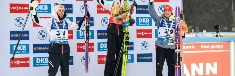 Sturla Holm Laegreid (NOR), Johannes Thingnes Boe (NOR), Benedikt Doll (GER), (l-r), © Authamayou/NordicFocus