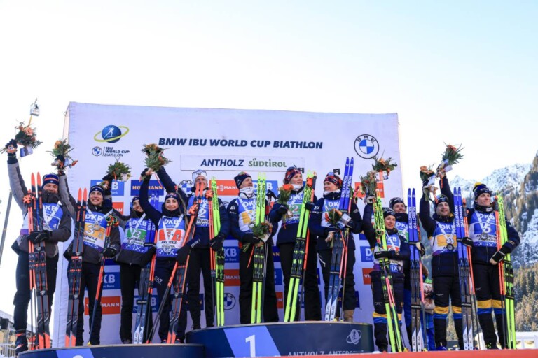 Tommaso Giacomel (ITA), Didier Bionaz (ITA), Lisa Vittozzi (ITA), Dorothea Wierer (ITA), Johannes Thingnes Boe (NOR), Tarjei Boe (NOR), Karoline Offigstad Knotten (NOR), Juni Arnekleiv (NOR), Anna Magnusson (SWE), Elvira Oeberg (SWE), Jesper Nelin (SWE), Martin Ponsiluoma (SWE), (l-r) © Manzoni/NordicFocus