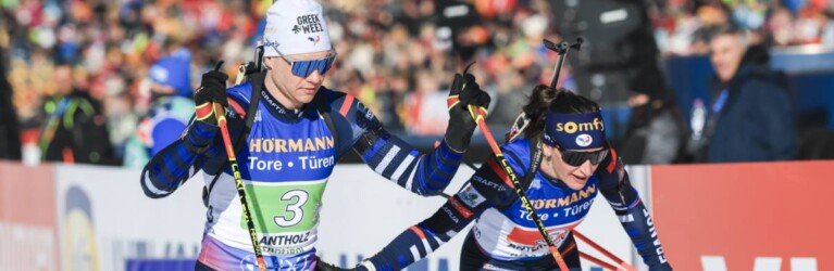 Emilien Jacquelin (FRA), Julia Simon (FRA), (l-r) - IBU World Cup Biathlon, single mixed relay, Antholz (ITA). www.nordicfocus.com. © Manzoni/NordicFocus. Every downloaded picture is fee-liable. © Manzoni/NordicFocus