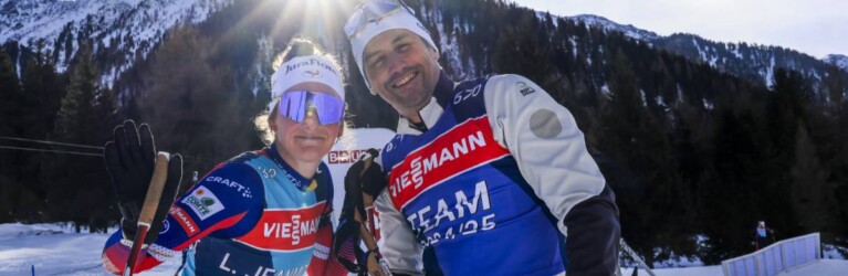 Lou Jeanmonnot (FRA), Cyril Burdet (FRA); coach Team France, (l-r) © Manzoni/NordicFocus