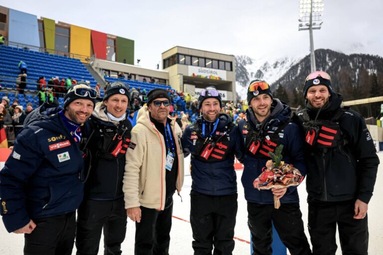 Event Feature: French technicians pose with Alberto Tomba © Manzoni/NordicFocus