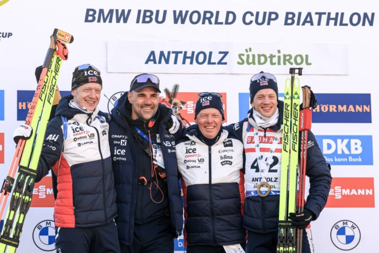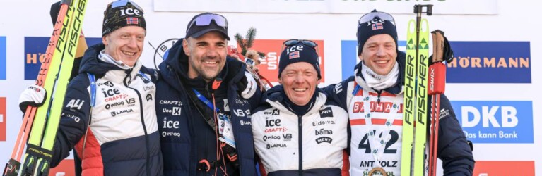 Johannes Thingnes Boe (NOR), Siegfried Mazet (FRA) coach team Norway, Tarjei Boe (NOR), (l-r) © Manzoni/NordicFocus
