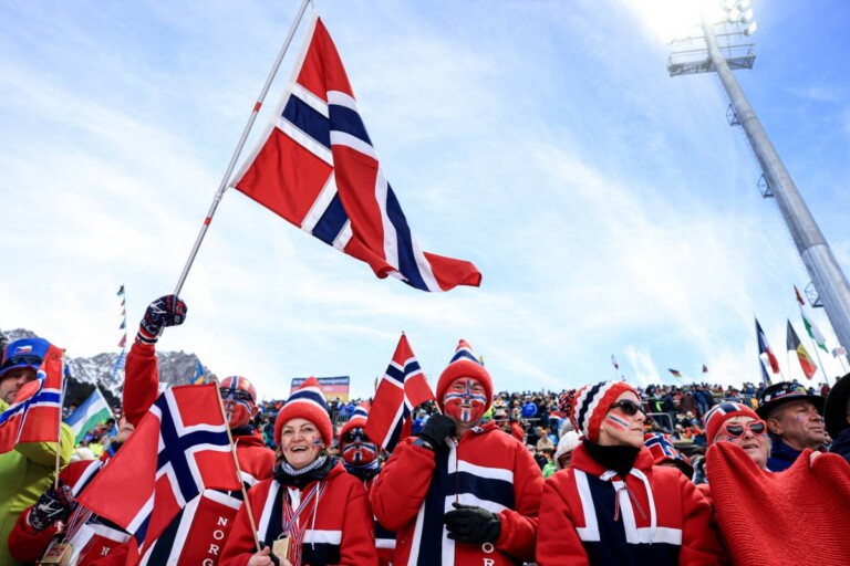 Event Feature: Norwegian fans with hats and flags on the grandstand © Manzoni/NordicFocus