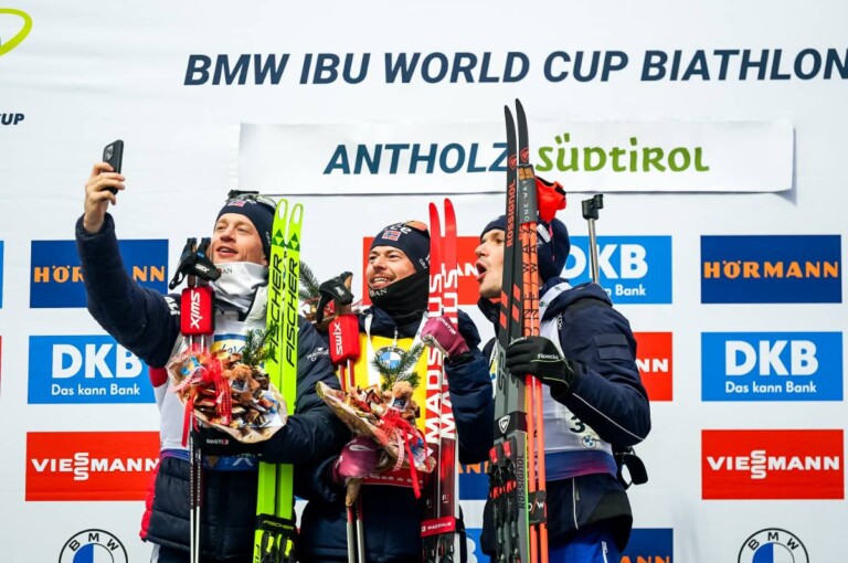 Tarjei Boe (NOR), Sturla Holm Laegreid (NOR), Tommaso Giacomel (ITA), (l-r) © Thibaut/NordicFocus