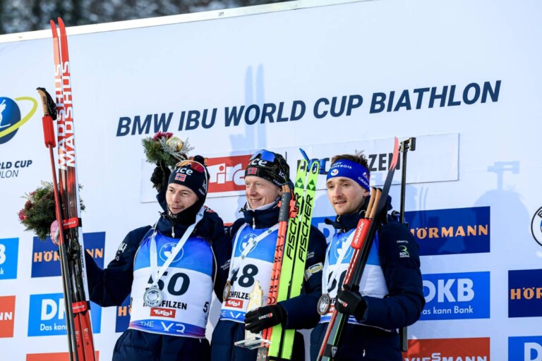 Sturla Holm Laegreid (NOR), Johannes Thingnes Boe (NOR), Fabien Claude (FRA), (l-r) © Manzoni/NordicFocus