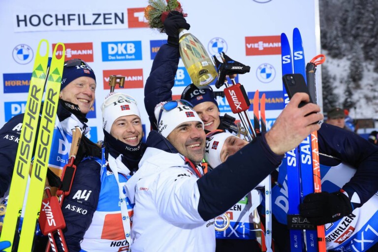 Bildergalerie Biathlon IBU Weltcup, Hochfilzen (AUT), Staffel Herren Johannes Thingnes Boe (NOR), Sturla Holm Laegreid (NOR), Siegfried Mazet (FRA) coach team Norway, Filip Fjeld Andersen (NOR), Vetle Sjaastad Christiansen (NOR), (l-r) © Manzoni/NordicFocus 1 2 3 4 5 6 7 8 9 10 11 12 13 14 15 16 17 18 19 20 21 22 23 © Bilder 1 - 23: Manzoni/NordicFocus;