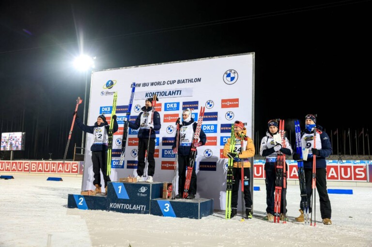 Quentin Fillon Maillet (FRA), Eric Perrot (FRA), Sturla Holm Laegreid (NOR), Danilo Riethmueller (GER), Vebjoern Soerum (NOR), Vetle Sjaastad Christiansen (NOR), (l-r) © Manzoni/NordicFocus