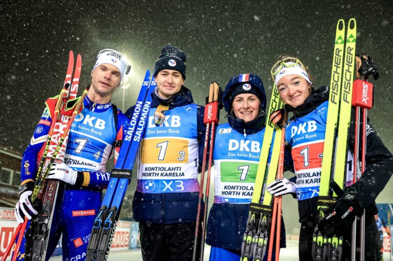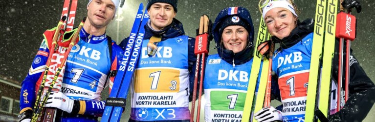 Emilien Jacquelin (FRA), Eric Perrot (FRA), Justine Braisaz-Bouchet (FRA), Lou Jeanmonnot (FRA), (l-r) © Manzoni/NordicFocus