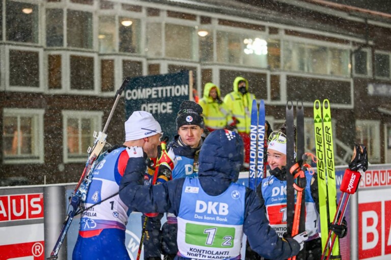 Emilien Jacquelin (FRA), Eric Perrot (FRA), Justine Braisaz-Bouchet (FRA), Lou Jeanmonnot (FRA), (l-r) © Authamayou/NordicFocus